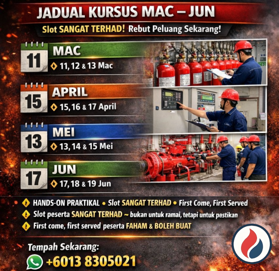 Anda bukan sahaja belajar konsep, tetapi juga cara sistem berfungsi di bangunan sebenar, operasi, penyelenggaraan dan servis sistem kebakaran